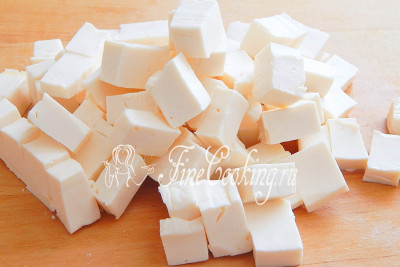 Затем нарежем как можно мельче плавные сырки. Некоторые и вовсе натирают их на терке, предварительно подморозив. В общем, поступайте так, как вам удобнее – главное, чем мельче будет сыр, тем быстрее он растворится в жидкости.